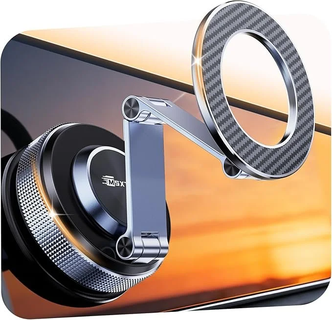 Car Phone Holder 360° Adjustable Tesla Magnetic Phone Mount Foldable Car Mount 2026 Zinc-Alloy Magsafe Phone Holders for Your Car for iPhone 17 Pro Max 16 15 14 13 12 Plus,Carbon Fiber